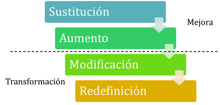 Por otra parte, el proceso de incorporación de las TIC en la enseñanza tiene diferentes etapas, pues se puede realizar de manera progresiva. Un buen marco de referencia es el modelo SAMR (sustitución, aumento, modificación y redefinición), siendo estas dos últimas etapas donde realmente se aprecia las ventajas de las tecnologías digitales. Por desgracia, inicialmente, las TIC en la educación se suelen situar en las dos primeras, por lo que es necesario tener la visión final de adonde queremos llegar y el camino a recorrer.